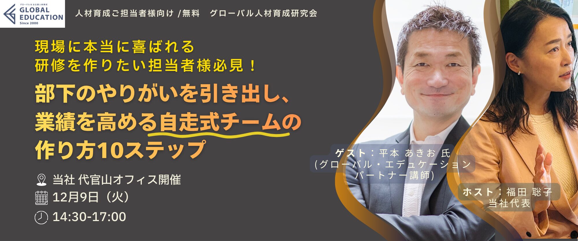 公開セミナー情報人材育成ご担当者様が集まり、グローバル市場で勝つための「組織開発と人材育成」を考えるセミナーです。