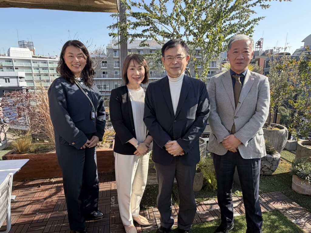 画面左より、当社代表福田、佐藤様、小田様、当社創業者布留川。