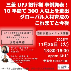 | 三菱UFJ銀行様 事例発表! 10年間で300人以上を輩出 グローバル人材育成のこれまでと今後 |
